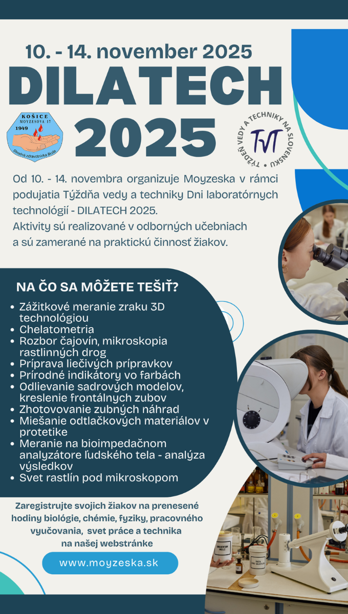 11.11.2025 | 09:30 - 10:1512. ročník Dní laboratórnych technológií DILATECH, prináša žiakom základných a stredných škôl ukážku praktického využitia...
