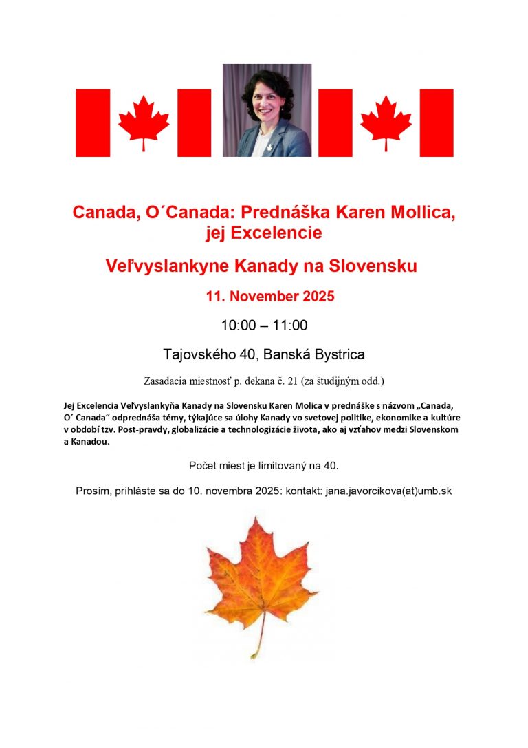 Jej Excelencia Veľvyslankyňa Kanady na Slovensku Karen Mollica v prednáške s názvom „Canada, O' Canada“...