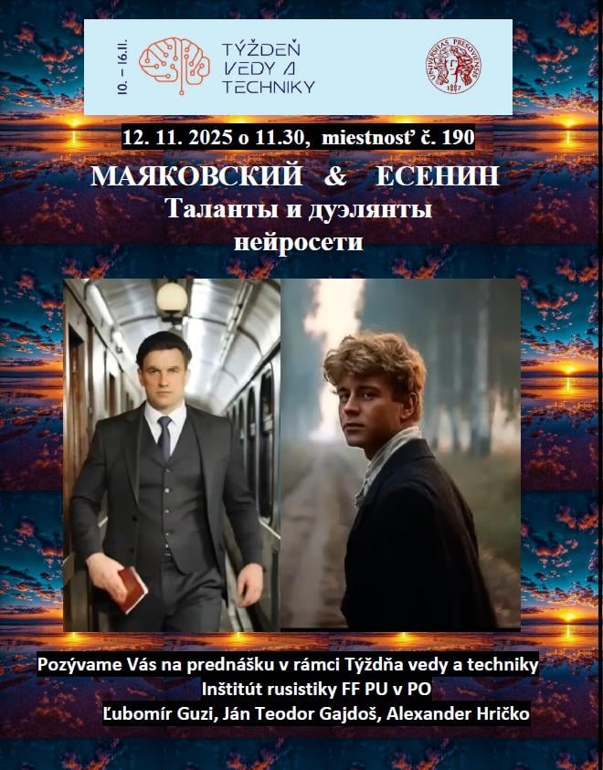 Prednáška je zameraná na priblíženie biografie a literárnej tvorby Vladimira Majakovkého a Sergeja Jesenina, dvoch...