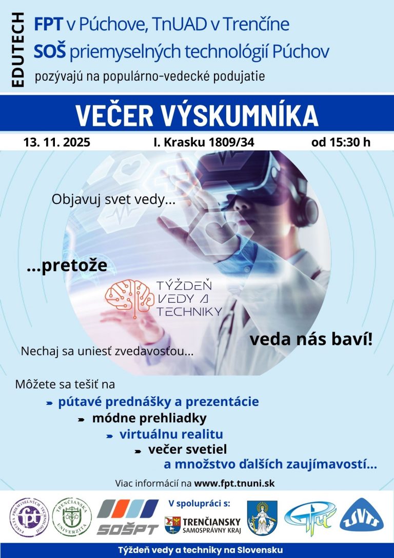 11.11.2025 | 08:15 - 13:30Podujatie je zamerané na propagáciu fakulty a prezentáciu možností štúdia na FPT TnUAD v Púchove....